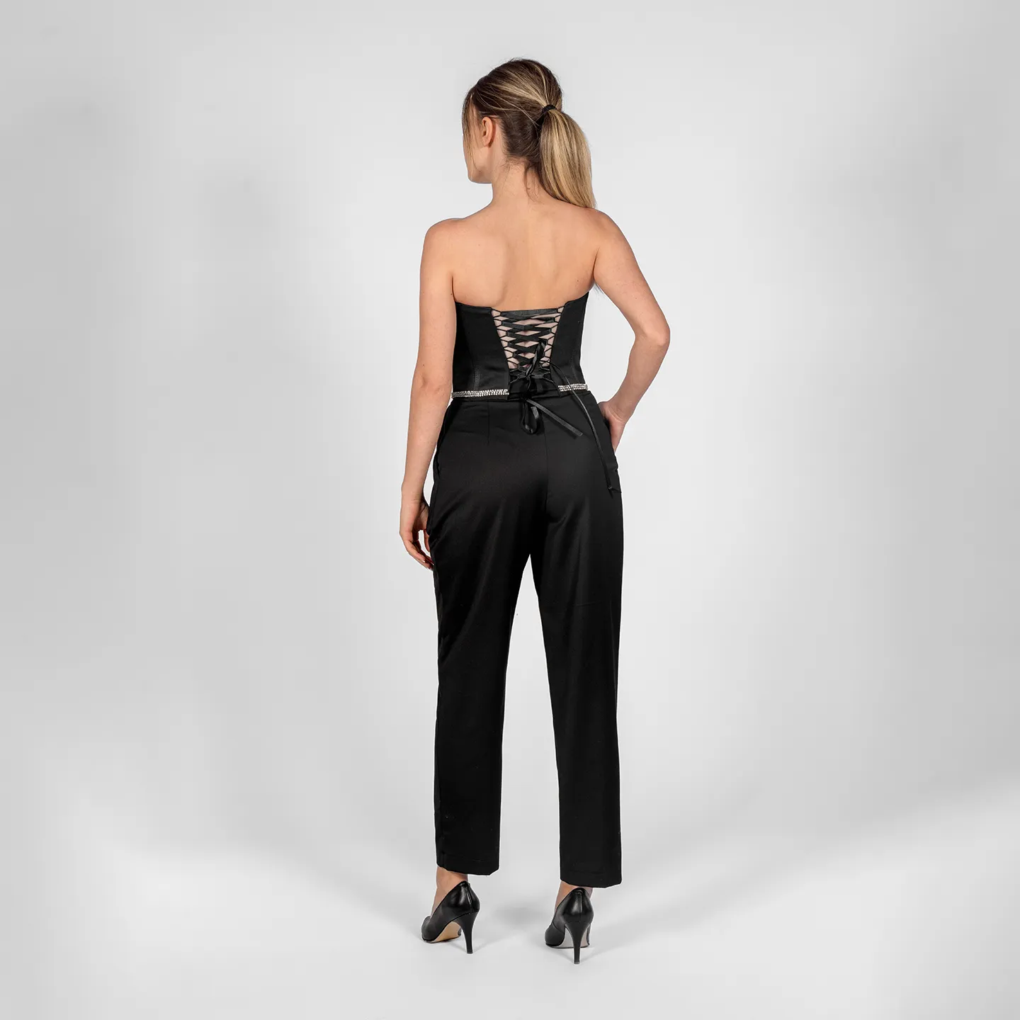 Corset negreu accesorizat cu strasuri si pietre argintii