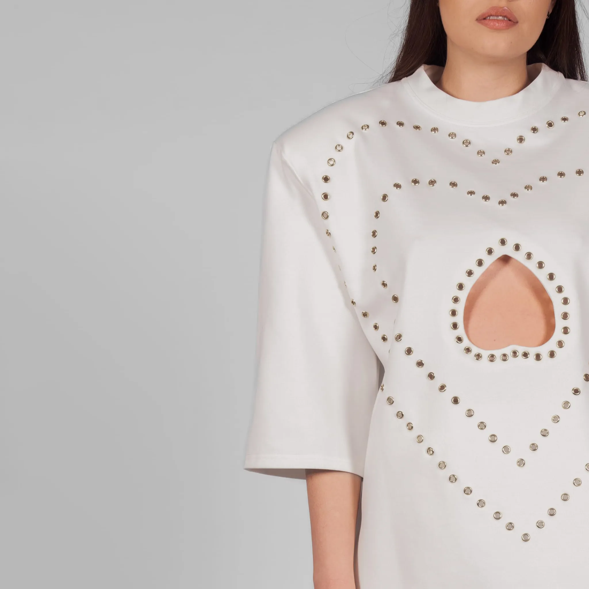 Tricou negru oversized accesorizat cu decupaj in forma de inima.